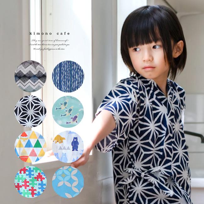 市場 甚平 キッズ 綿100 男の子 生地 じんべい 上下セット 子供 部屋着 日本製 おしゃれ